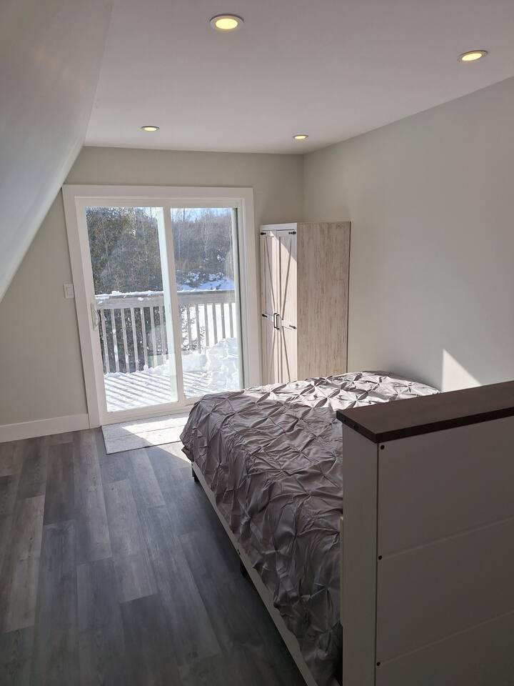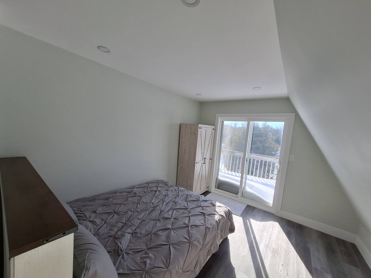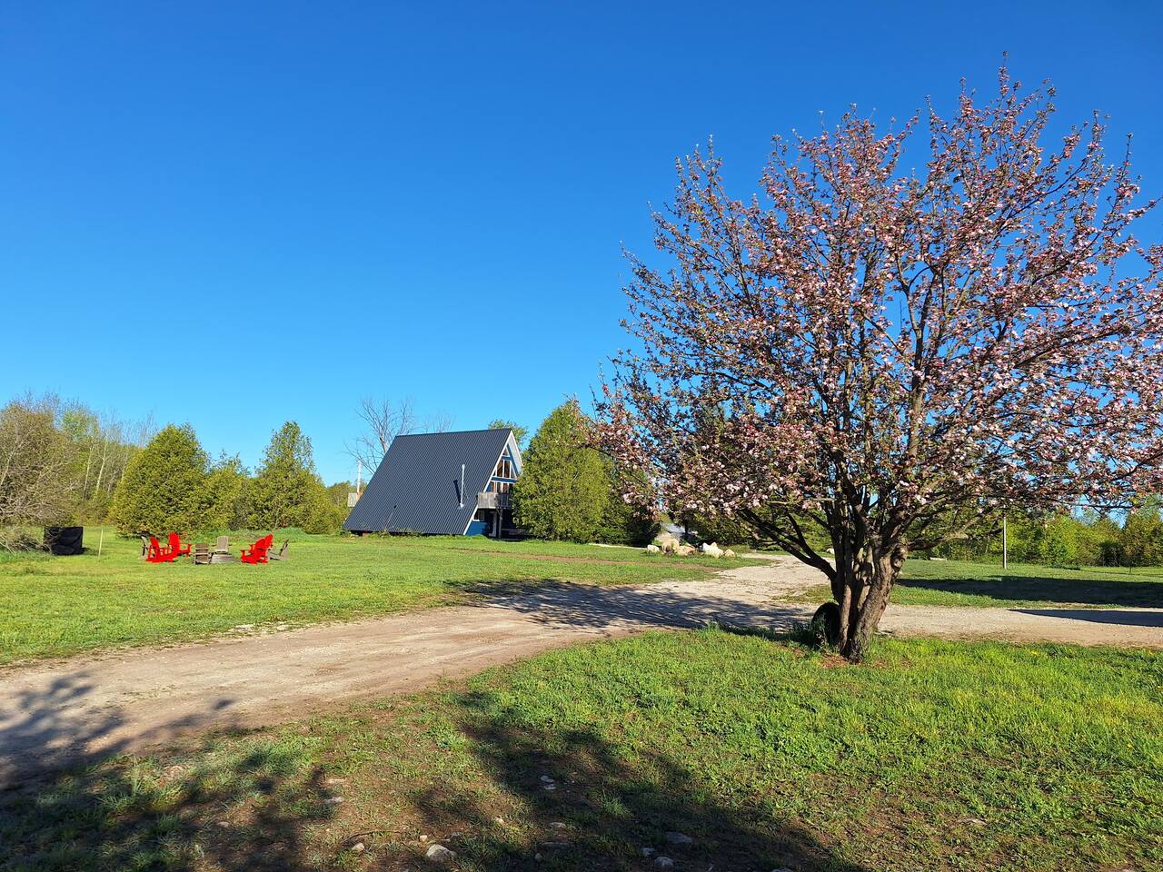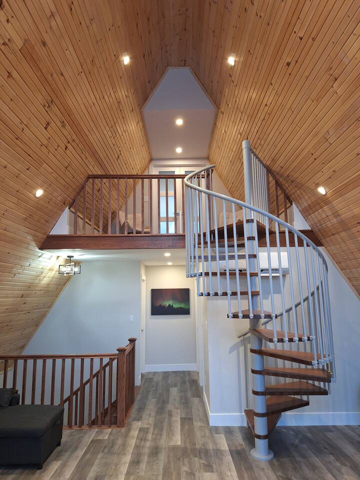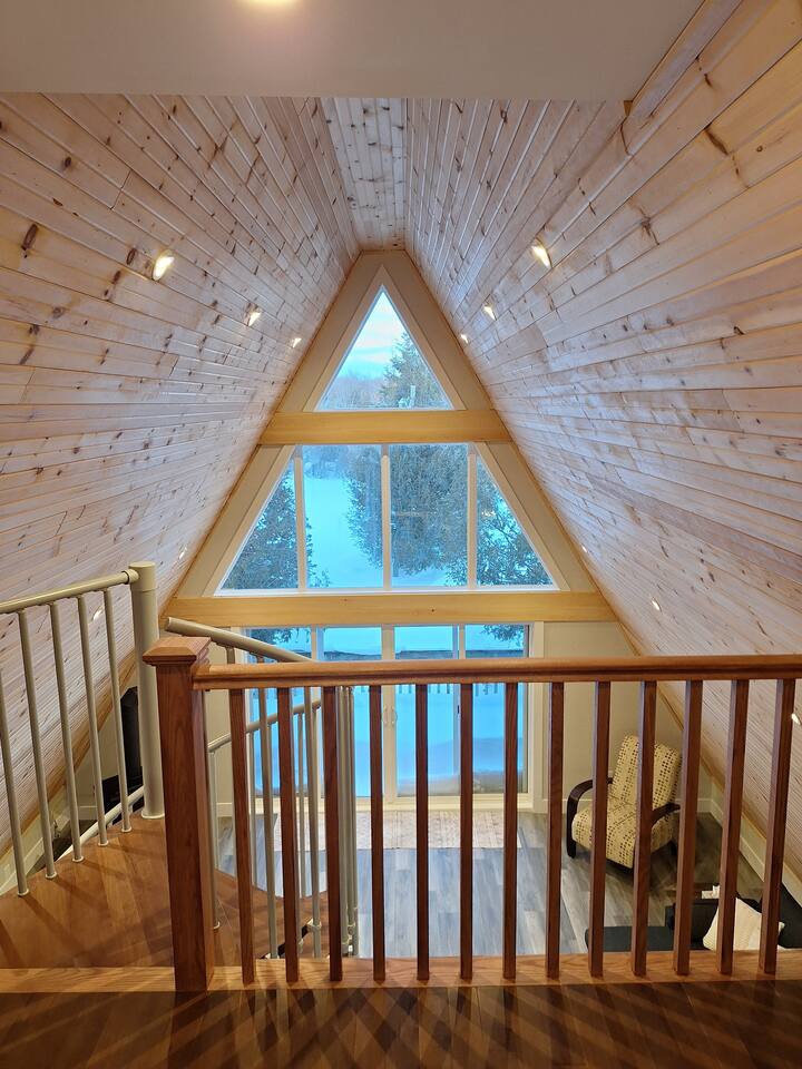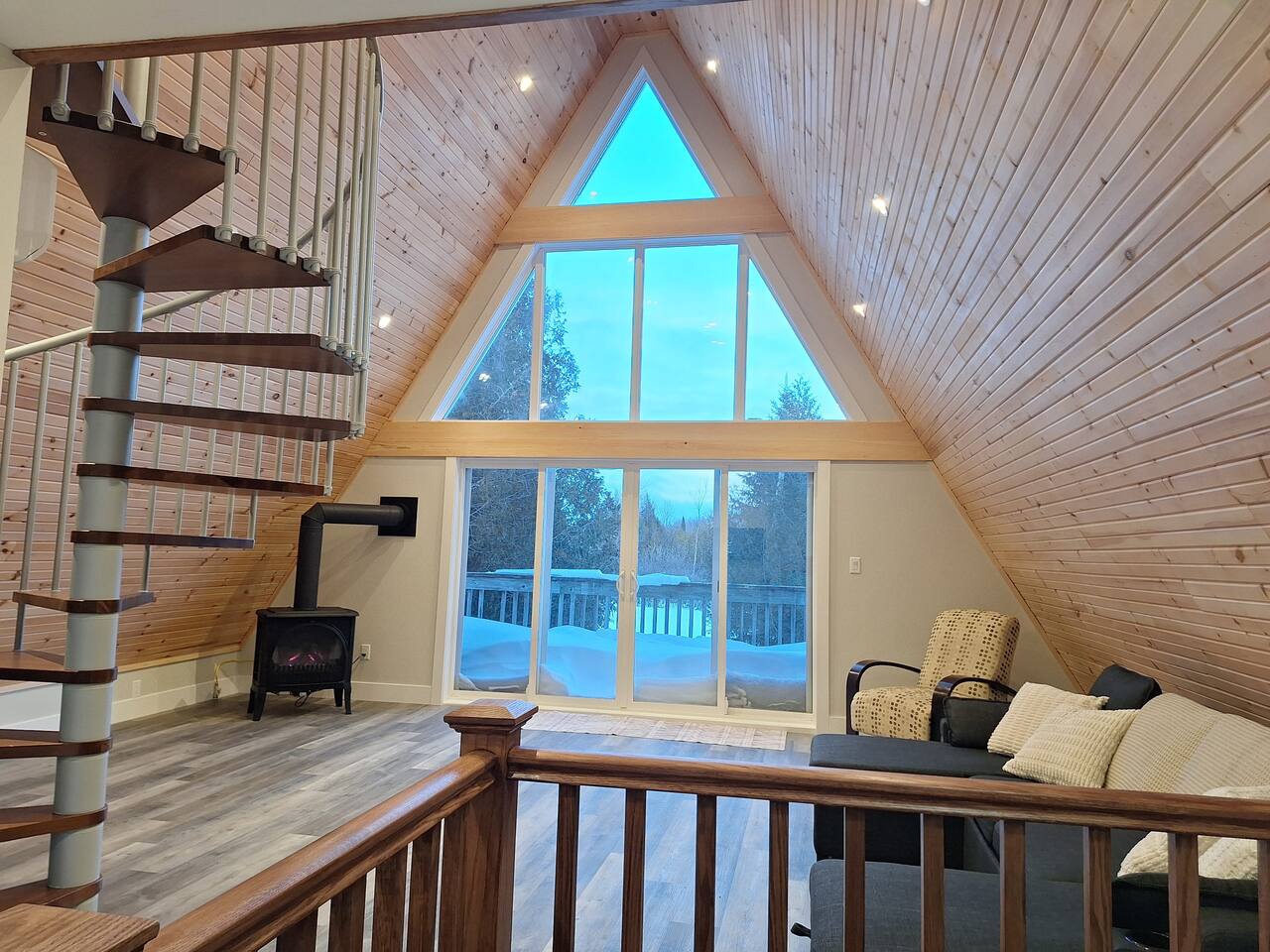 This 3 bedroom A-frame features a loft with a queen sized bed. 2 additional bedrooms with queen size beds and sliding doors to gain access to the deck. There are also 2 comfortable couches that can convert to queen sized beds. There’s 25 acres for you to access via short walking loops, which are also great for snowshoeing in the winter (loaner snowshoes included!). Three seasons of the year, you are also welcome to use the large outdoor fire pit. Full kitchen, laundry facilities, two fireplaces, soaker tub and two showers are all on site. There is additional 25 acres of crown land adjacent to our property. This area can also be explored at your leisure.