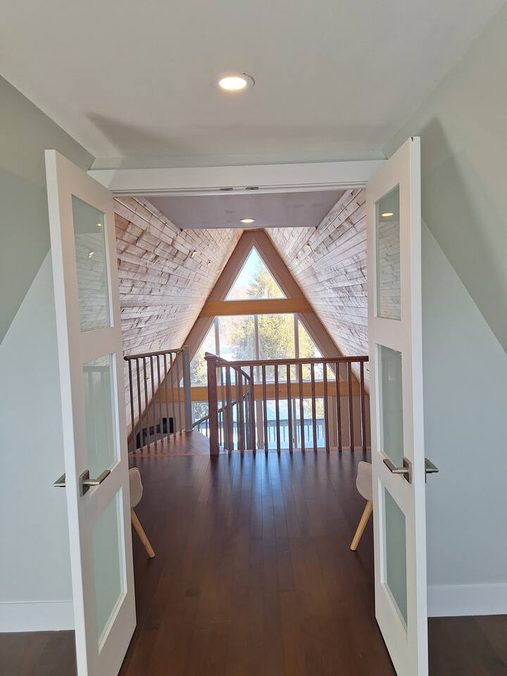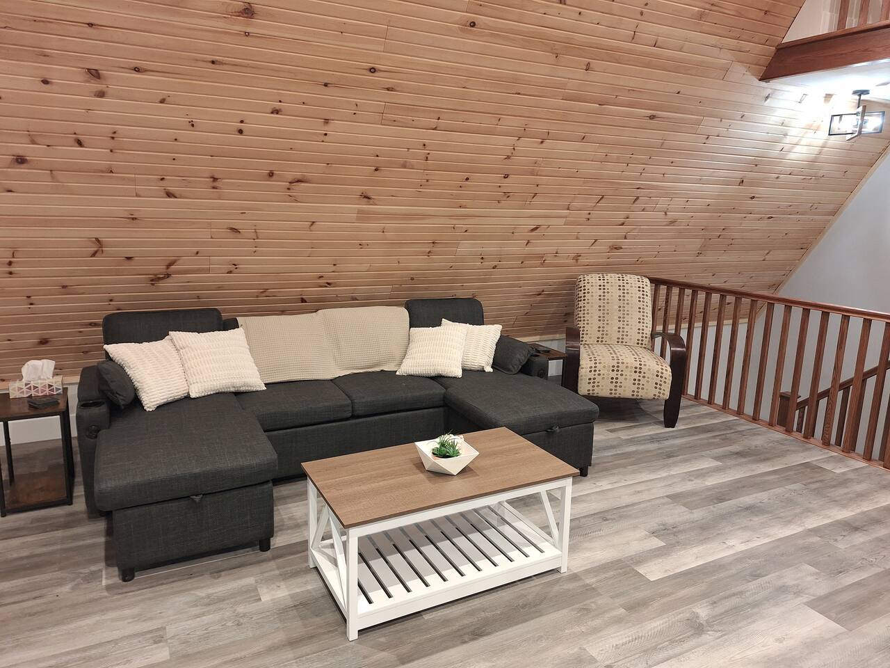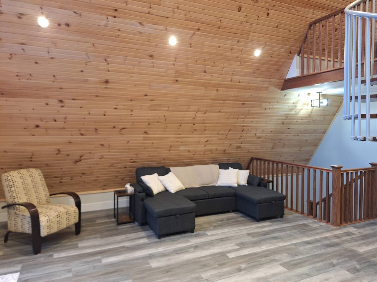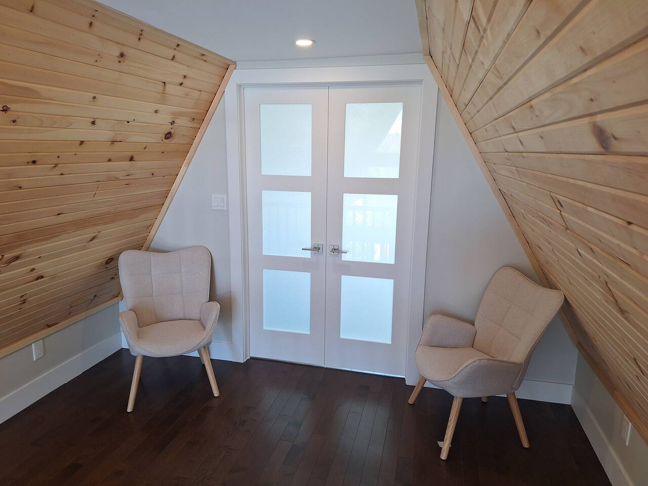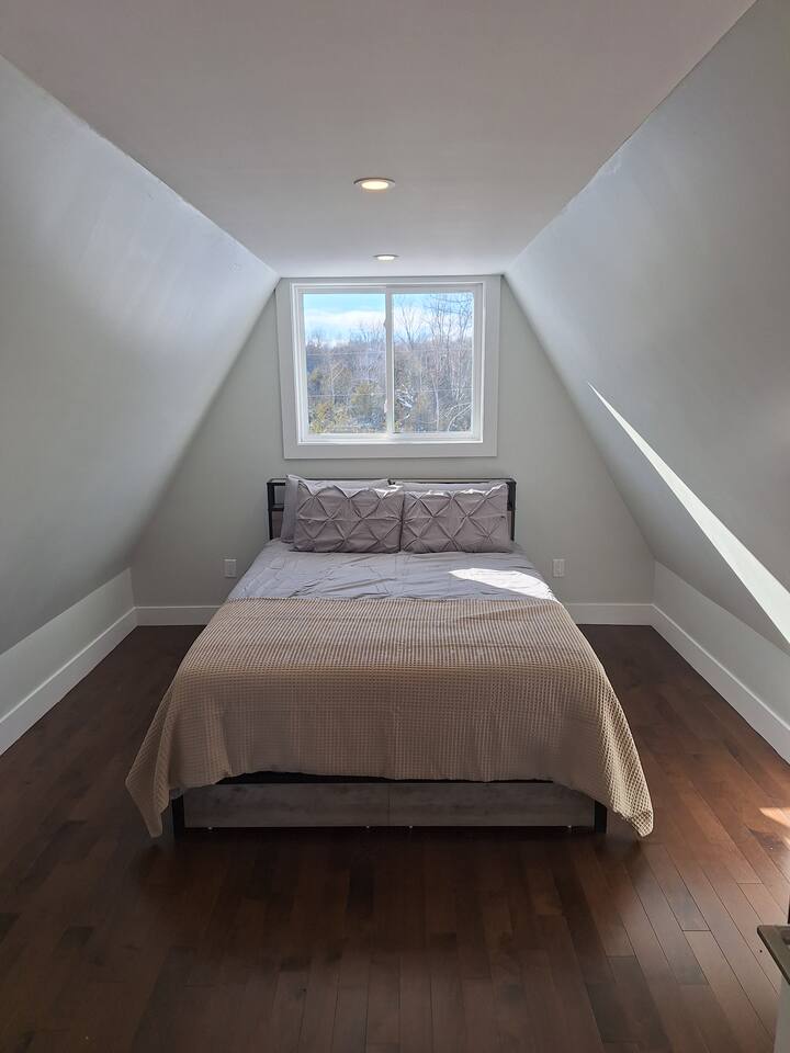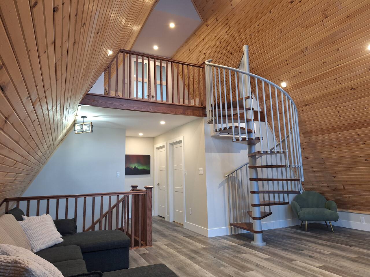 This 3 bedroom A-frame features a loft with a queen sized bed. 2 additional bedrooms with queen size beds and sliding doors to gain access to the deck. There are also 2 comfortable couches that can convert to queen sized beds. There’s 25 acres for you to access via short walking loops, which are also great for snowshoeing in the winter (loaner snowshoes included!). Three seasons of the year, you are also welcome to use the large outdoor fire pit. Full kitchen, laundry facilities, two fireplaces, soaker tub and two showers are all on site. There is additional 25 acres of crown land adjacent to our property. This area can also be explored at your leisure.